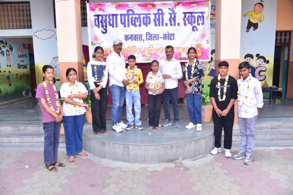Kanwas News/कनवास. वसुधा पब्लिक सीनियर सेकेंडरी स्कूल में बुधवार को उत्साह और गौरव का माहौल रहा। विद्यालय परिसर में आयोजित समारोह में बोर्ड परीक्षाओं में उत्कृष्ट प्रदर्शन करने वाले मेधावी छात्र-छात्राओं को सम्मानित किया गया। विद्यालय के प्रधानाचार्य गिरिराज सेन ने जानकारी देते हुए बताया कि इस वर्ष बोर्ड परीक्षाओं में विद्यार्थियों ने विद्यालय का मान बढ़ाया है।