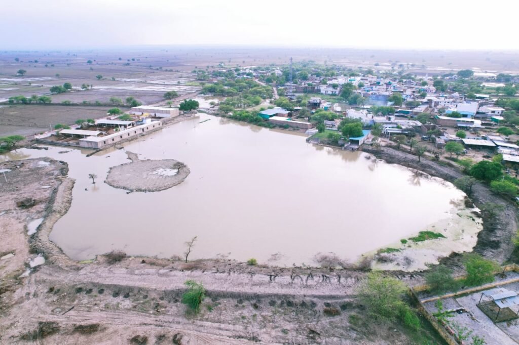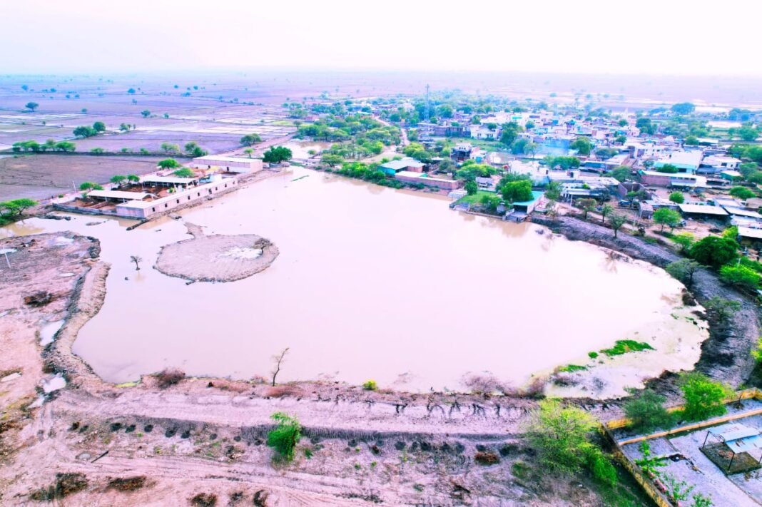 Kanwas News/कनवास. क्षेत्र की ग्राम पंचायत हिंगोनिया के अधीन आने वाले बाछीहेड़ा गांव में सदानीरा रहने वाला तालाब पहली बारिश में लबालब हो गया है। इससे ग्रामीणों में खुशी झलक उठी है। यह तालाब करीब 25 वर्षों से बारह महीने पानी से भरा रहता आ रहा है। वर्तमान में तालाब के चारों तरफ की साफ सफाई, चार दीवार एवं गहराई आदि कार्य अमृत सरोवर योजना के अंतर्गत करीब 10 लाख रुपए की लागत से ग्राम पंचायत द्वारा कार्य किया गया था। ग्रामीणों ने बताया कि तालाब का संपूर्ण कार्य होने,तालाब के चारों ओर गंदगी एवं जलकुंभी नहीं रहने से तालाब का पानी कांच की तरह दूर से चमकने लगा है तथा तालाब बारह माह सदानीरा रहेगा। गर्मियों में भी तालाब में पानी भरा रहेगा। तालाब में बारह माह पानी रहने से तालाब के आस पास के खेतों के कुएं, बावड़ी, हैंडपंप रिचार्ज होते रहेंगे। तालाब का पानी दिन रात टिल्लू पंप छोटी मोटर चलाकर तोड़ा गया और उसके पश्चात जेसीबी मशीन द्वारा तालाब की गहराई कर तथा ट्रैक्टर से समतल किया गया। तालाब की साफ सफाई एवं गहराई होने से तालाब की सुंदरता में निखार आ गया। बाछीहेडा गांव में तालाब पानी से लबालब होने से वर्तमान में बारिश में तालाब के चारों ओर दीवार पर पौधरोपण किया जाएगा तथा बारह माह पेड़ों की देखरेख एवं पानी पिलाई हेतु ग्रामीणों को जिमेदारी सौंपी जाएगी।