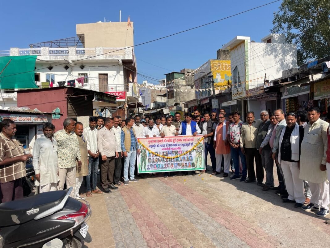 Kanwas News/सांगोद. नगर में मंडल व कांग्रेस कमेटी के कार्यकर्ताओं ने कश्मीर के पुलवामा के आतंकी हमले में शहीद हुए सैनिकों व महाकुंभ की भगदड़ में अपनी जान गंवाने वाले श्रद्धालुओं को भावभीनी श्रद्धांजलि अर्पित की। पुलवामा हमले में सांगोद क्षेत्र के हेमराज मीणा भी शहीद हुए थे उनको भी सभी कार्यकर्ताओं ने श्रद्धांजलि अर्पित की। नगर कांग्रेस अध्यक्ष मनोज सुवालका, मंडल अध्यक्ष असरार अहमद, पूर्व नगर अध्यक्ष राजेंद्र गहलोत ने सभी शहीदों को श्रद्धांजलि अर्पित करते हुए कहा कि 14 फरवरी 2019 को पुलवामा हमले में 40 से अधिक जवान शहीद हो गए थे। देश की रक्षा के खातिर अपनी जान दी ऐसे वीर जवान सैनिकों एवं क्षेत्र के अमर शहीद हेमराज मीणा को साथ ही महाकुंभ की भागदड़ में अपनी जान गंवाने वाले श्रद्धालुओं को श्रद्धांजलि अर्पित की। इस अवसर पर मिडिया प्रभारी सलीम अंसारी, सत्यप्रकाश शर्मा, मिर्जा शकील बैग, ब्रजराज मीणा, नगर उपाध्यक्ष शहजाद खान, नगर कोषाध्यक्ष मुसव्विर खान, नगर उपाध्यक्ष अंकुश शर्मा, मोहम्मद शरीफ, नगर सचिव सिद्धार्थ मीणा, इरशाद मिस्त्री, इसराइल अंसारी, दौलतराम मेघवाल, नगर सचिव इकबाल सिंगीवाला सहित कई मौजूद रहे।