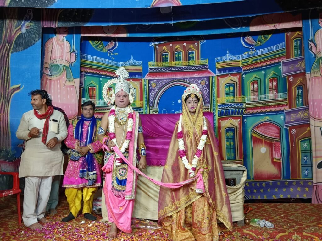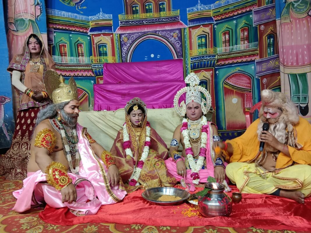 Kanwas News/कनवास. उपखंड क्षेत्र के आमली झाड़ गांव में काशी के 25 कलाकारों द्वारा भगवान श्री रामचंद्र जी के जीवन चरित्र पर आधारित 9 दिवसीय श्री रामलीला के कलाकारों द्वारा रंगमंचीय प्रदर्शन किया जा रहा है। श्री रामलीला मंचन के चौथे दिन राम सीता विवाह का मंचन प्रस्तुत किया गया। मंच पर जैसे ही भगवान श्रीराम का सीता के साथ विवाह हुआ तो पांडाल में मोजूद लोगों ने जय श्री राम के जयकारे लगाते हुए पूरे वातावरण को भक्तिमय कर दिया। आयोजन कर्ताओं ने बताया की रात को श्री रामलीला में राम-सीता विवाह, श्री परशुराम लक्ष्मण संवाद एवं जनक जननी माता जगदंबा, प्रभु श्रीरामचंद्र के विवाह का आयोजन किया गया। विशेष-प्रसंग कथानुसार भगवान परशुराम ध्यान लगाकर बैठे रहते है। ध्यान भंग होता है तो सोचते है यह क्या हुआ। वेकाग्रचित होकर देखते है तब उन्हें पता चलता है कि मिथिला में रखा गया धनुष टूट गया। इसके तुरंत बाद वे मिथिला पहुँचते है बहुत क्रोधित होते है जहाँ लक्ष्मण और उनका तीखा संवाद होता है। जिसे दर्शक देख बहुत आनंदित हुए। यहां 1मार्च से बावड़ी के महादेव मंदिर प्रांगण में समस्त ग्रामवासियों की ओर से आयोजन किया जा रहा है जो 9 मार्च तक आयोजित होगी।