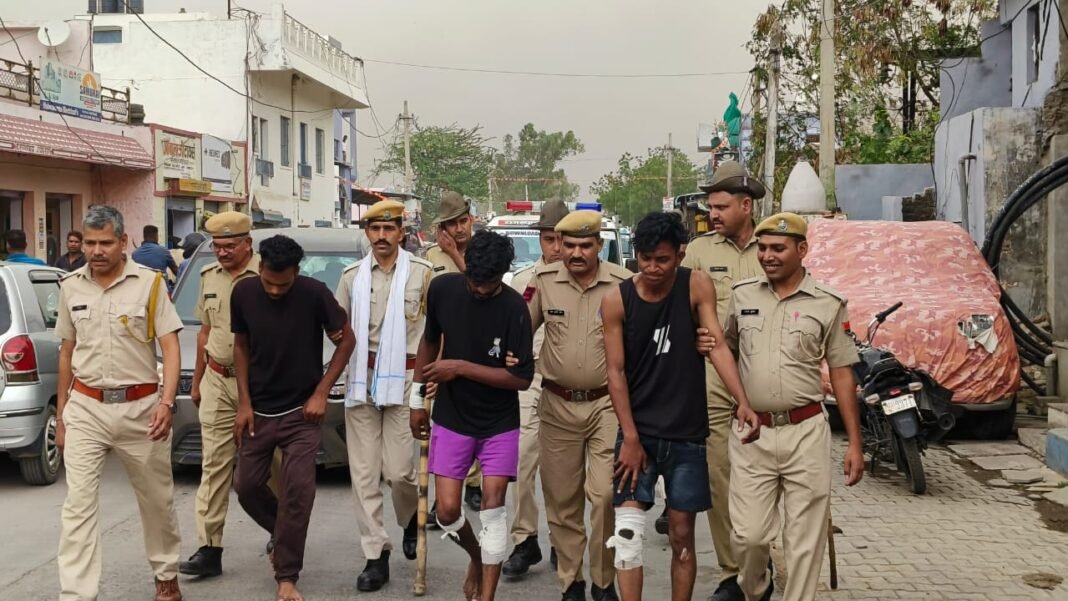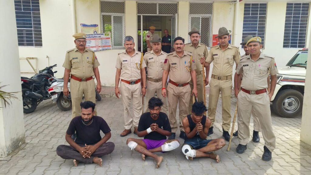 Kanwas News/कनवास. क्षेत्र के देवलीमांझी थाना इलाके के खातीखेडा गांव में शादी मे आये दुल्हे के साथ चाकुबाजी करने वाले बदमाशों को पुलिस ने गिरफ्तार कर मुख्य मार्गों से पैदल मार्च निकला।जिला पुलिस अधीक्षक कोटा ग्रामीण सुजीत शकर ने बताया कि देवली मांजी थाना इलाके के खातिहेड़ा गांव में घोड़ी पर सवार दूल्हे को पीछे से चाकूबाजी कर घटना को अंजाम देकर फरार बदमाशों को पुलिस ने विष्णु बैरवा उम्र 22 साल निवासी खातिहेड़ा, रोहित बैरवा उम्र 20 साल,सोनु बैरवा उम्र 26 साल निवासी बृजलिया को गिरफतार करने में सफलता प्राप्त की है। वहीं बताया कि केशोरायपाटन के इंद्रपुरिया निवासी लक्ष्मीनारायण पुत्र धर्मराज बैरवा उम्र 25साल की शादी मिनाक्षी पुत्री भैरुलाल निवासी खातीखेडा होनी थी। वहीं सरकारी स्कुल के पास मेन रोड पर घोडी पर रात्रि 9बजे सवार होकर दुल्हन के घर तोरण मारने जा रहे थे, वहीं साथी बदमाशों ने डीजे पर बाराती नाचते हुए चल रहे थे, इसी दौरान पीछे से आकर चाकू मारकर गंभीर घायल कर दिया।दूल्हे ने बताया कि विष्णु बैरवा निवासी खातीखेडा व जान से मारने की नियत से मुझे मरने आए थे। मामला दर्ज होने के बाद वृताधिकारी सांगोद अभय कुमार के सुपरविजन में थानाधिकारी सुरेश मीणा के द्वारा टीम गठित की गई। साईबर सेल के सहयोग व त्वरित अनुसंधान दल के सहयोग से गहनता से अनुसंधान एवं पुछताछ कर चाकुबाजी घटना का खुलासा कर गिरफ्तार किया गया।