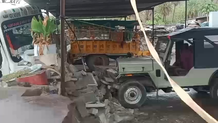 Kanwas News/कनवास. क्षेत्र के मुकुन्दरा टाइगर रिजर्व के दरा गांव में एक बेकाबू ट्रक ने घर की दीवार को टक्कर मार दी। ट्रक की टक्कर से घर मे मौजूद सदस्यों में हड़कंप मच गया। अचानक हुए हादसे से घबराए घर के लोगो ने इधर उधर भाग कर अपनी जान बचाई। वही ट्रक की टक्कर से गिरी दीवार घर मे खड़ी जीप पर जा गिरी। जिसके चलते जीप आगे से क्षतिग्रस्त हो गई। हादसे की सूचना पर आसपास के लोग मौके पर जमा हो गए। इस बीच ट्रक चालक मौका देख फरार हो गया। हादसा शुक्रवार दोपहर करीब 12 बजे हुआ। ग्रामीणों ने बताया कि बजरी से भरा हुआ एक ट्रक कोटा की ओर से तेज रफ्तार में आ रहा था। इसी दौरान बारिश भी हो रही थी। सड़क पर चलता हुआ ट्रक अचानक अनियंत्रित हुआ और सड़क से करीब 25 फिट दूर बने मकान की दीवार से जा टकराया। गनीमत रही कि ट्रक मकान की बाउंड्री वाल से टकराया। जिससे बड़ा हादसा होने से टल गया। हादसे में दीवार गिरने से अंदर खड़ी जीप का अगला हिस्सा क्षतिग्रस्त हुआ है। मामले की सूचना पुलिस को दी गई है।