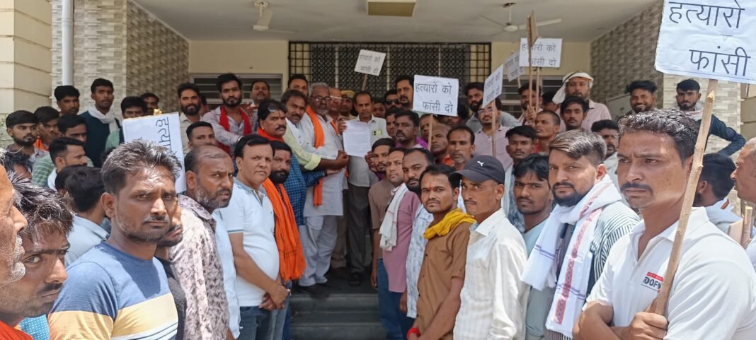 ज्ञापन से पूर्व कस्बे में विरोध करते हुए निकले ग्रामीण- कस्बे में ज्ञापन देने से पूर्व सभी ग्रामवासी पुराना पुलिस थाना चौक परिसर पर एकत्रित हुए वहां से युवा हाथों में हत्यारों को कड़ी सजा दिलवाने की तख्तियां लेकर एवं नारे बाजी करते हुए रवाना हुए जो कर्णेश्वर महादेव मंदिर, गणेश चौक, मुख्य बाजार, सुभाष सर्किल, चमन चौराहा होते हुए उपखंड कार्यालय पहुंचे जहां पर ज्ञापन सौंपा गया।