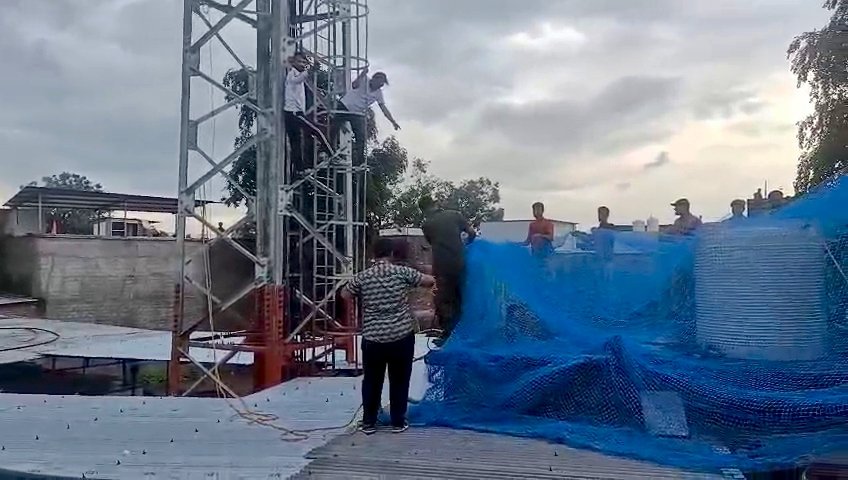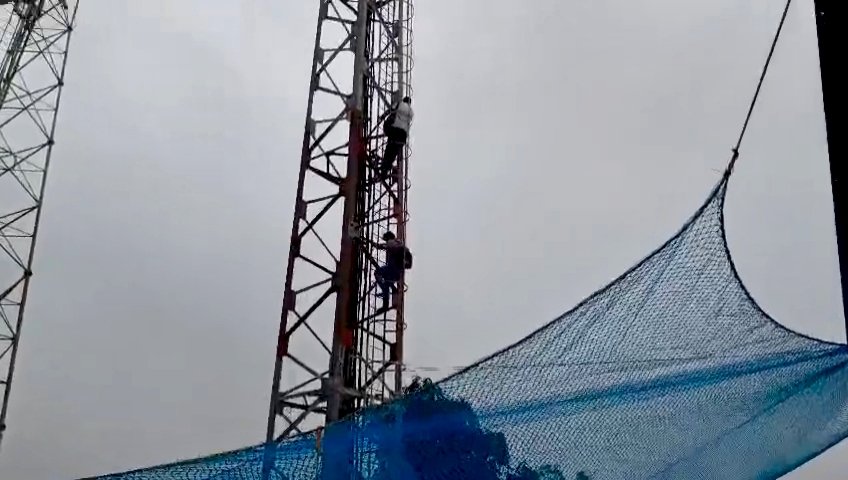 Kanwas News/सांगोद. थाना क्षेत्र के बपावर कस्बे में रविवार को बारिश के बीच दो युवक अचानक अपनी मांगों को लेकर एक मोबाइल टावर पर चढ़ गए जिसके बाद कस्बे में अफरा-तफरी मच गई। मौके पर मौजूद लोगों ने थाने में सूचना दी जिसके बाद प्रशासन ने तुरंत कोटा से गोताखोर रेस्क्यू टीम को सूचना देकर बुलाया। रेस्क्यू टीम ने टावर के चारों ओर सेफ्टी नेट लगाकर स्थिति को संभाला। मौके पर मौजूद सांगोद तहसीलदार रवि शर्मा व पुलिस जाप्ते द्वारा दोनों युवकों को नीचे उतारने के लिए अनाउंस मेट भी करवाया गया।