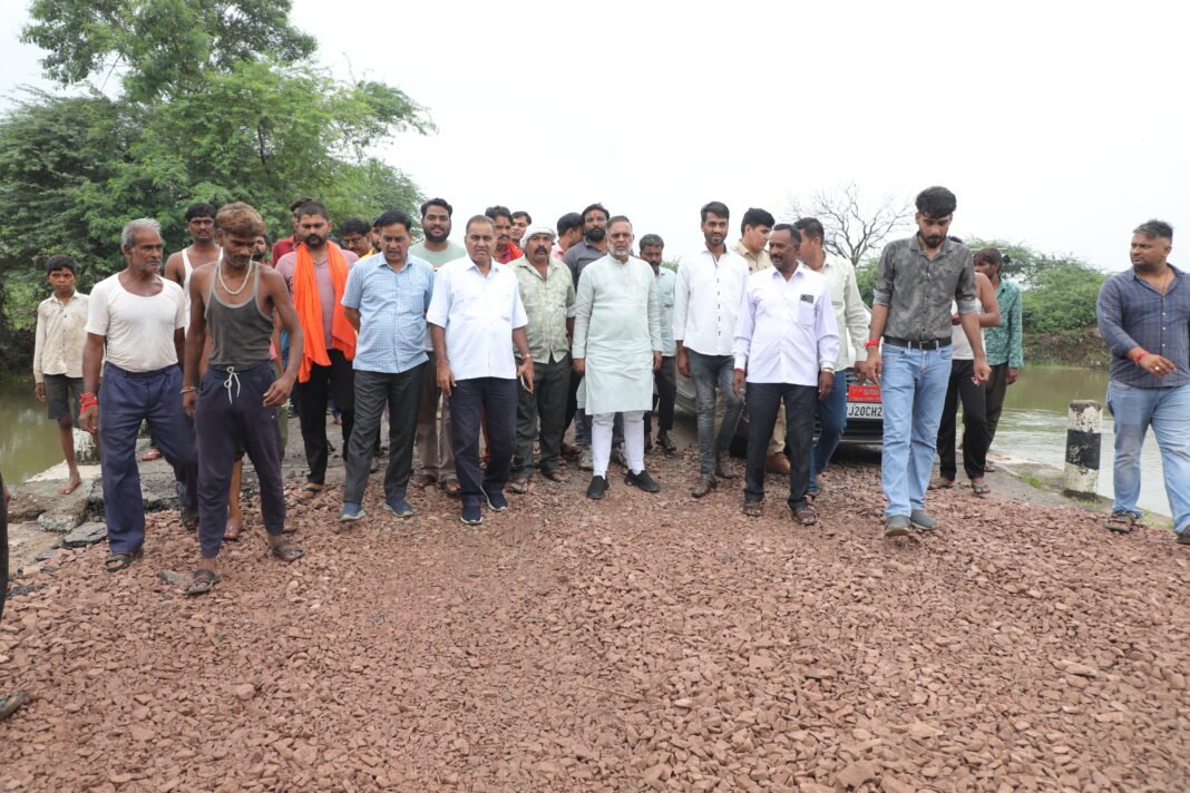 Kanwas News/कनवास. क्षैत्र व कस्बे में बाढ़ प्रभावित गावों का ऊर्जा मंत्री हीरालाल नागर ने शुक्रवार को दौरा किया। साथ में मौजूद अधिकारियों को तुरंत राहत दिए जाने के निर्देश दिए। ऊर्जा मंत्री नागर ने कनवास कस्बे में जलभराव वाले स्थानों का दौरा किया। जिसमें मुख्य बाजार, पंचायत भवन के सामने, इंदिरा कॉलोनी समेत अन्य क्षेत्रों में पहुंचकर जल भराव की स्थिति को देखा। वहीं कोलाना, कोलानी, गुंजारा, मोरू खुर्द समेत अन्य गांव में भी गए। जहां पर खेतों में भरे हुए पानी, उखड़ी हुई सड़कों और टूटे हुए घरों की स्थिति का जायजा लिया। मंत्री नागर ने जिला कलेक्टर से बात कर क्षेत्र में हुए नुकसान का तुरंत सर्वे कराकर उचित मुआवजा और सहायता राशि देने के निर्देश दिए। वहीं एसडीएम और तहसीलदार को फसल खराबे की गिरदावरी रिपोर्ट समय पर प्रस्तुत करने के लिए निर्देशित किया।