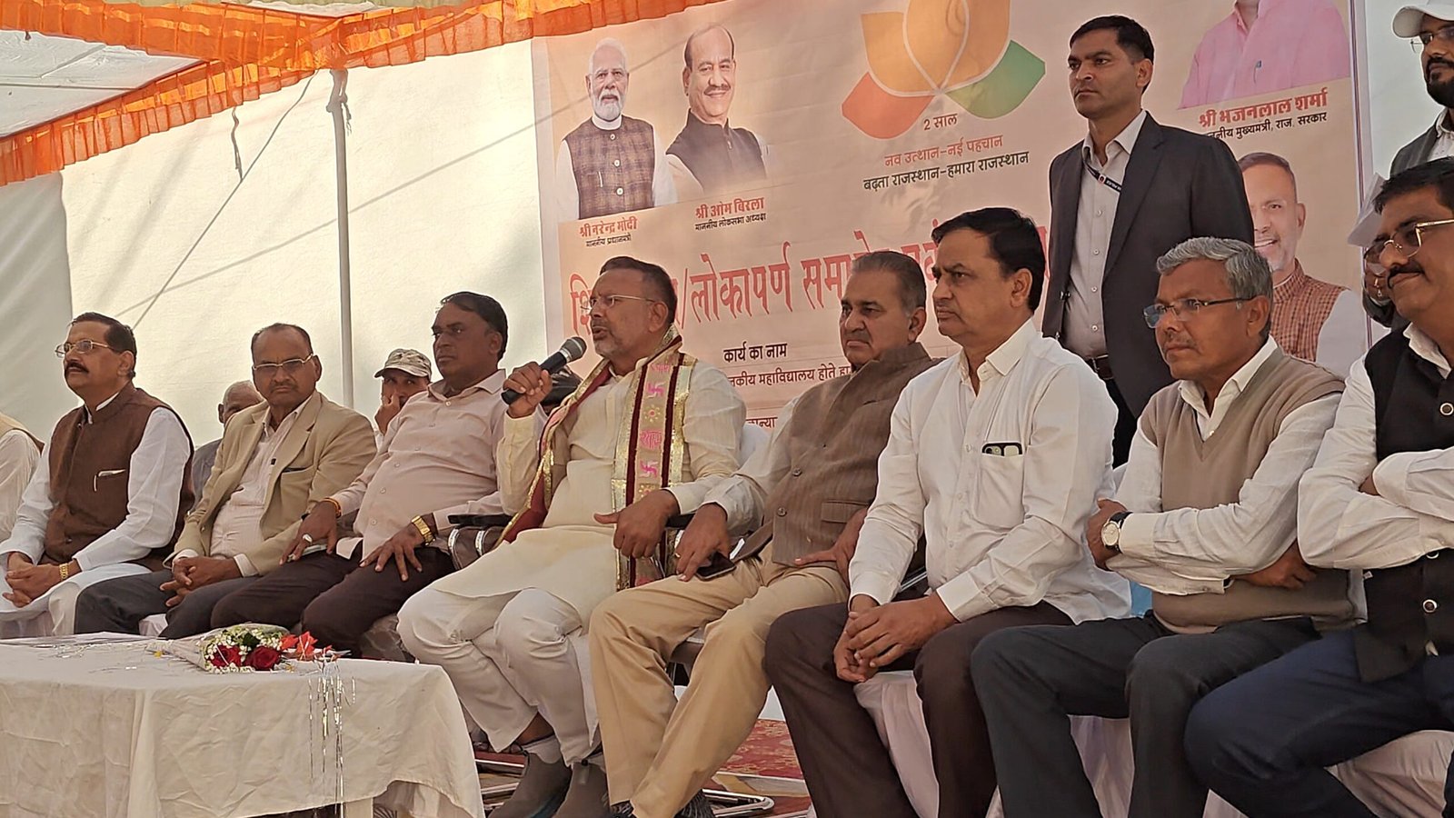 12.47 करोड़ रुपये के विकास कार्यों का शिलान्यास–लोकार्पण- ऊर्जा मंत्री नागर ने 25-25 लाख रुपये की लागत से निर्मित लक्ष्मी ग्राम सेवा सहकारी समिति कनवास एवं ग्राम सेवा सहकारी समिति भंडारण गोदाम का लोकार्पण किया। साथ ही 2 करोड़ रुपये की लागत से आवां चौराहे से धूलेट रोड पर अटल प्रगति पथ, 1.10 करोड़ रुपये से कनवास बाइपास से सिमलिया सड़क, 2.76 करोड़ रुपये से नयागांव–धूलेट–दांता सड़क, 2.87 करोड़ रुपये से धूलेट कुआं के माल से मंदारिया तक संपर्क सड़क निर्माण सहित कई अन्य सड़कों एवं पेयजल योजनाओं का शिलान्यास किया गया।