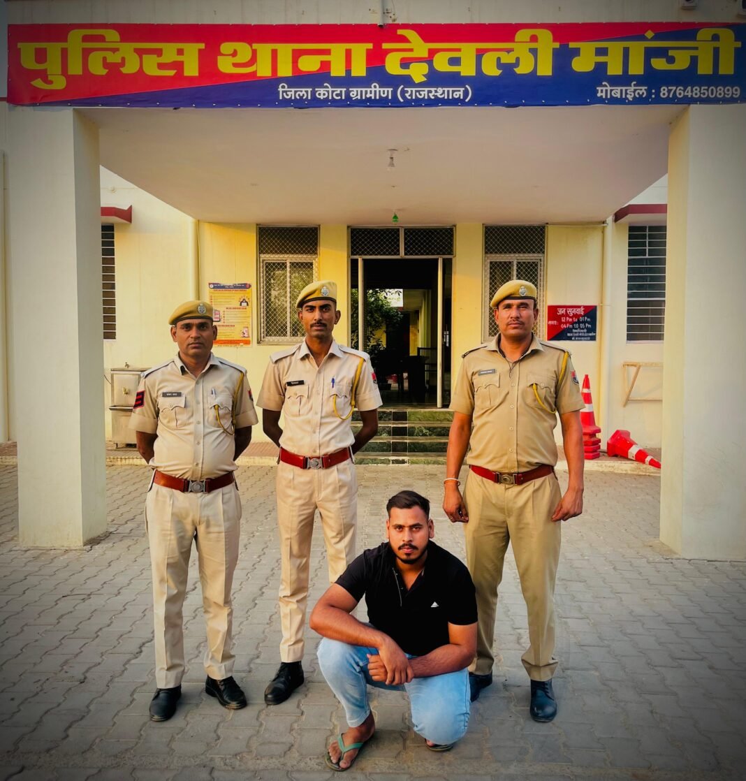 कनवास. उपखण्ड क्षेत्र की देवलीमांजी पुलिस ने कार्यवाही करते हुऐ सटटा पर्ची काटते आरोपी शुभम वैष्णव को पालाहेडा से गिरफ्तार किया है। जिसके पास से पुलिस ने सट्टा उपकरण व सट्टा रकम 2370 रूपये भी बरामद किए है। कोटा ग्रामीण एसपी करन शर्मा ने बताया कि 100 दिवसीय कार्ययोजना में चलाये गये विशेष अभियान के तहत थानाधिकारी सुरेश मीणा के नेतृत्व में गठित टीम ने यात्री प्रतिक्षालय के पास पालाहेडा तिराहा से जुआ सटटा की पर्ची काटते हुऐ आरोपी को गिरफ्तार कर सट्टा उपकरण व 2370 रूपये बरमाद करने में सफलता प्राप्त की है।